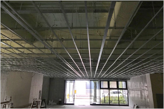 軽天工事とは、内装の「骨組み」を作る工事のことを言い、建築内装の基礎となります。