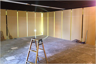 特に岩綿吸音板(高級感があり尚かつ音を遮る機能を持つ)を使った天井仕上げは定評をいただいています。