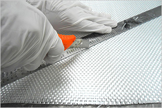他のパネル以上に取り扱いが難しく、徹底した管理のもと、一枚一枚丁寧に施工を行います。